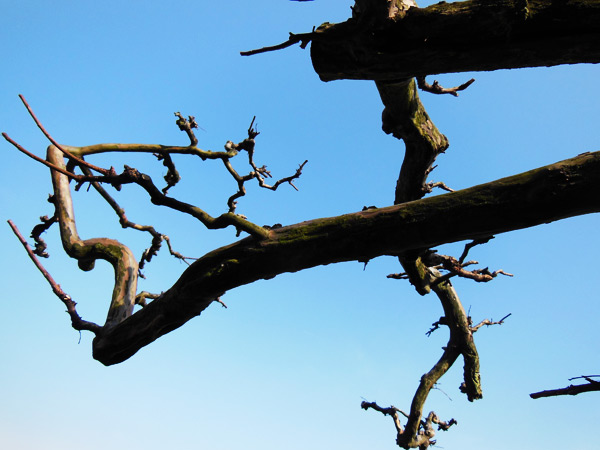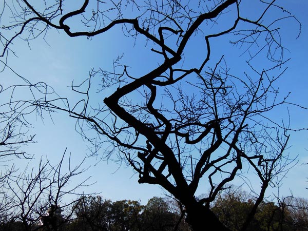 くの字に折れた梅の枝が