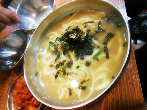 刀削麺だという。3000ウォンで一人前。二人前をこれまたシェアする。