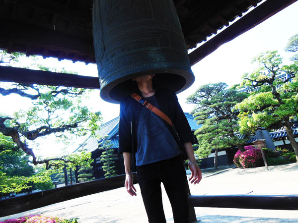 静かに佇む鐘楼が寂しそうだったので、カメラのセルフタイマー機能を使って遊ぶ。