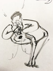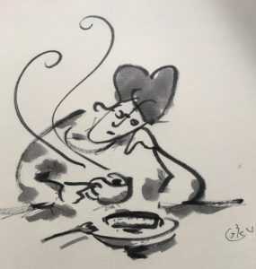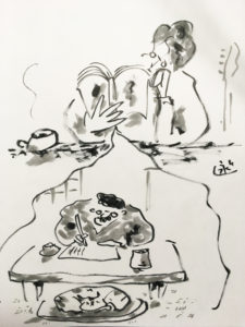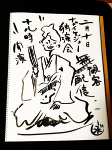 今日のイラストは、噺家さんの独演会風に