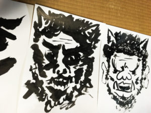 墨で鬼を描いてみる。