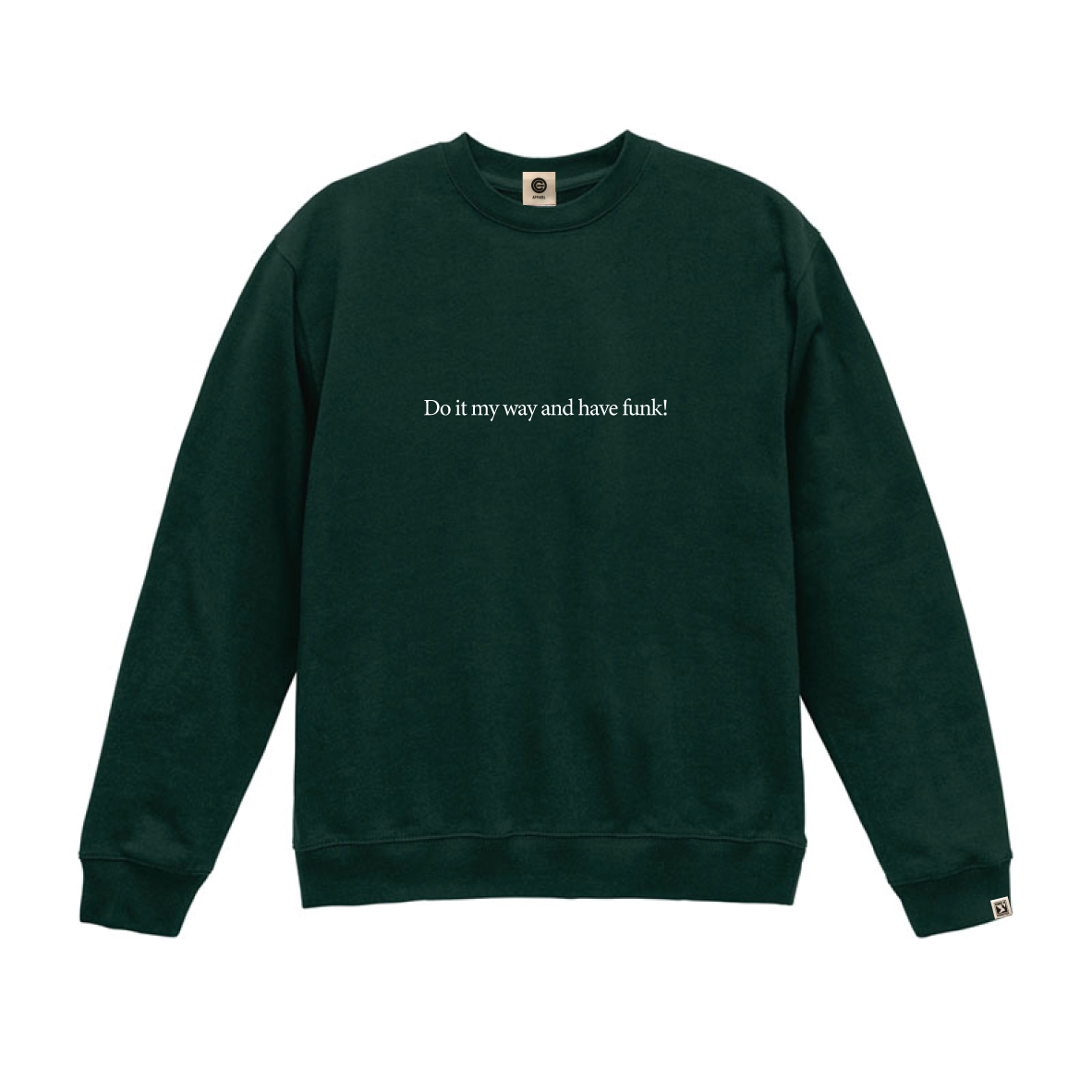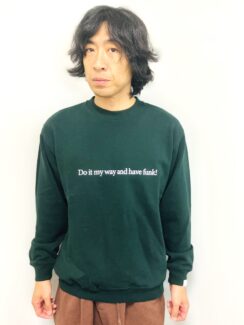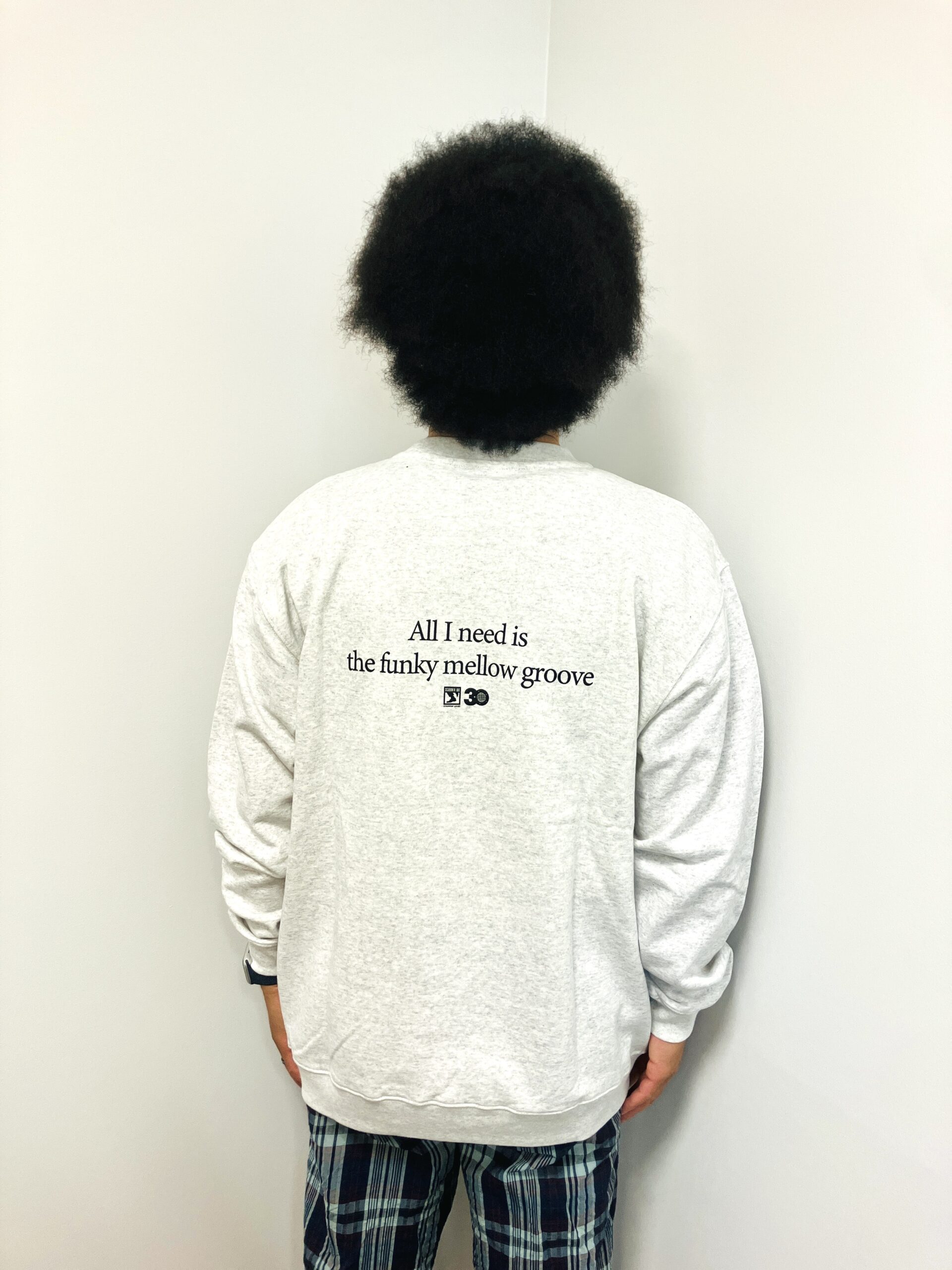 のフォントがプリントされたミニマルなデザインのスウェットです。