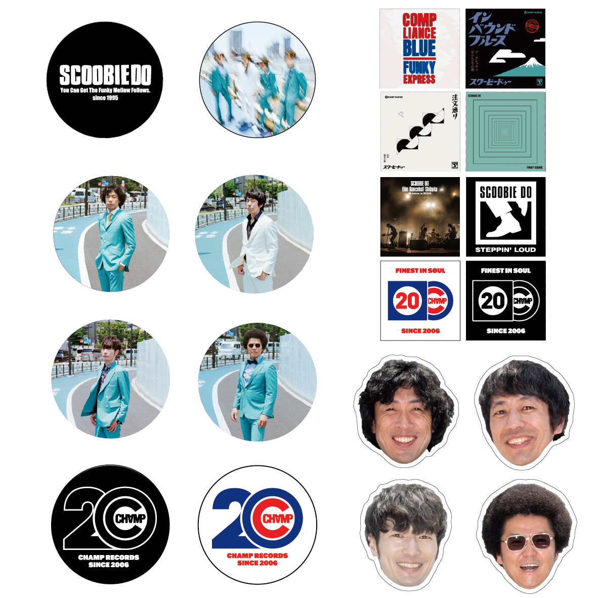 CHAMP RECORDS Logo, 『コンプライアンスブルー』『インバウンドブルース』『注文通り』『FUNKY SQUARE』Jacket designed by 近藤幸二郎(BLACK BELT JONES DC)