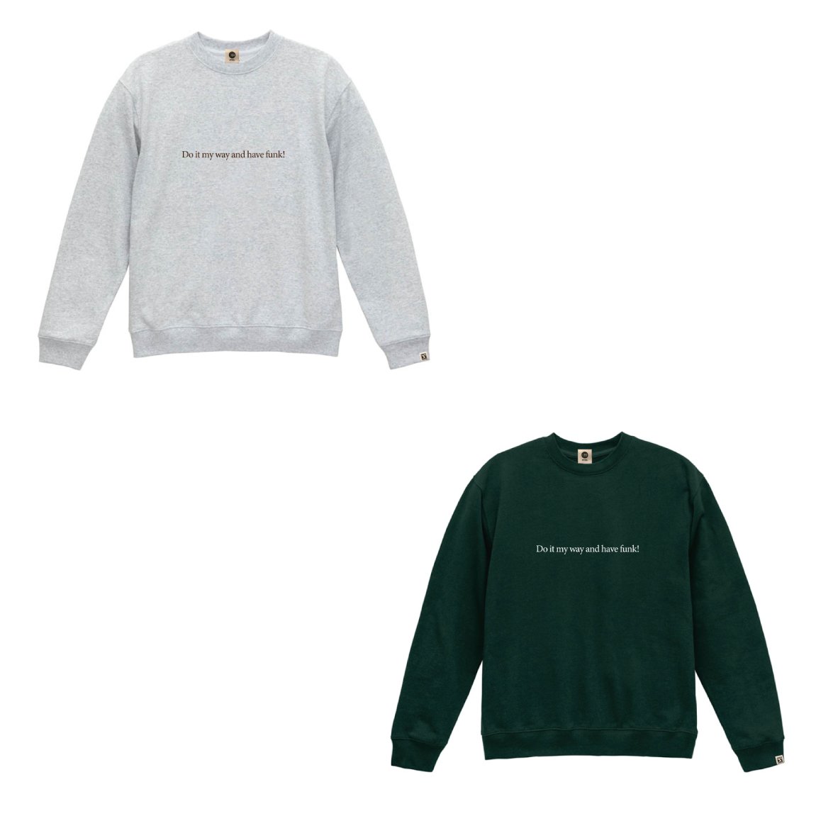 のフォントがプリントされたミニマルなデザインのスウェットです。