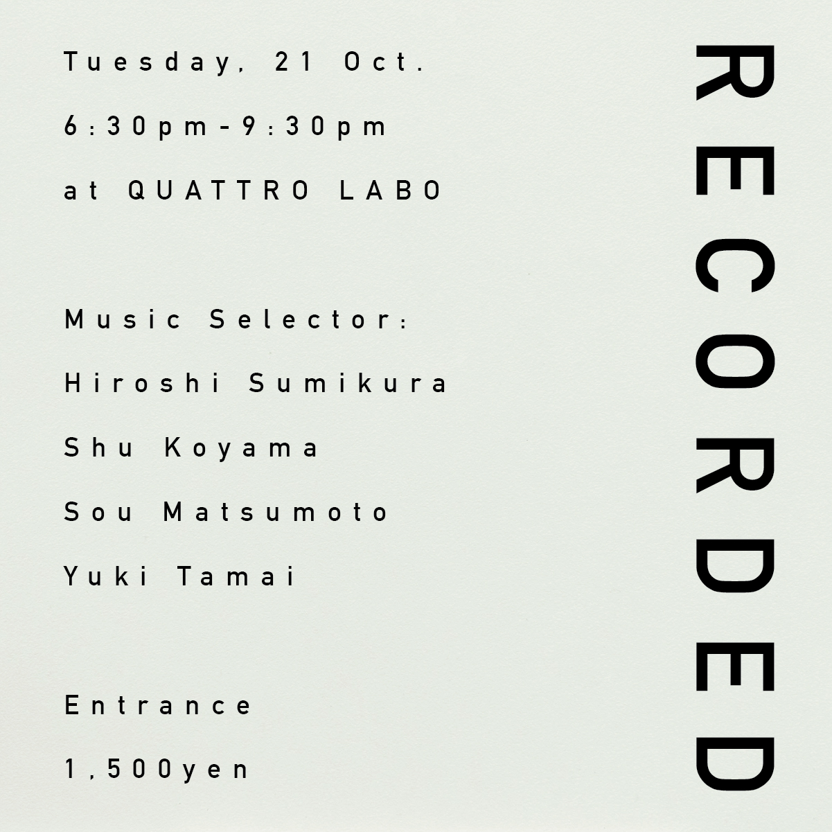 楽しむイベント”RECORDED”!今回は渋谷クアトロ・ラボにて開催!
